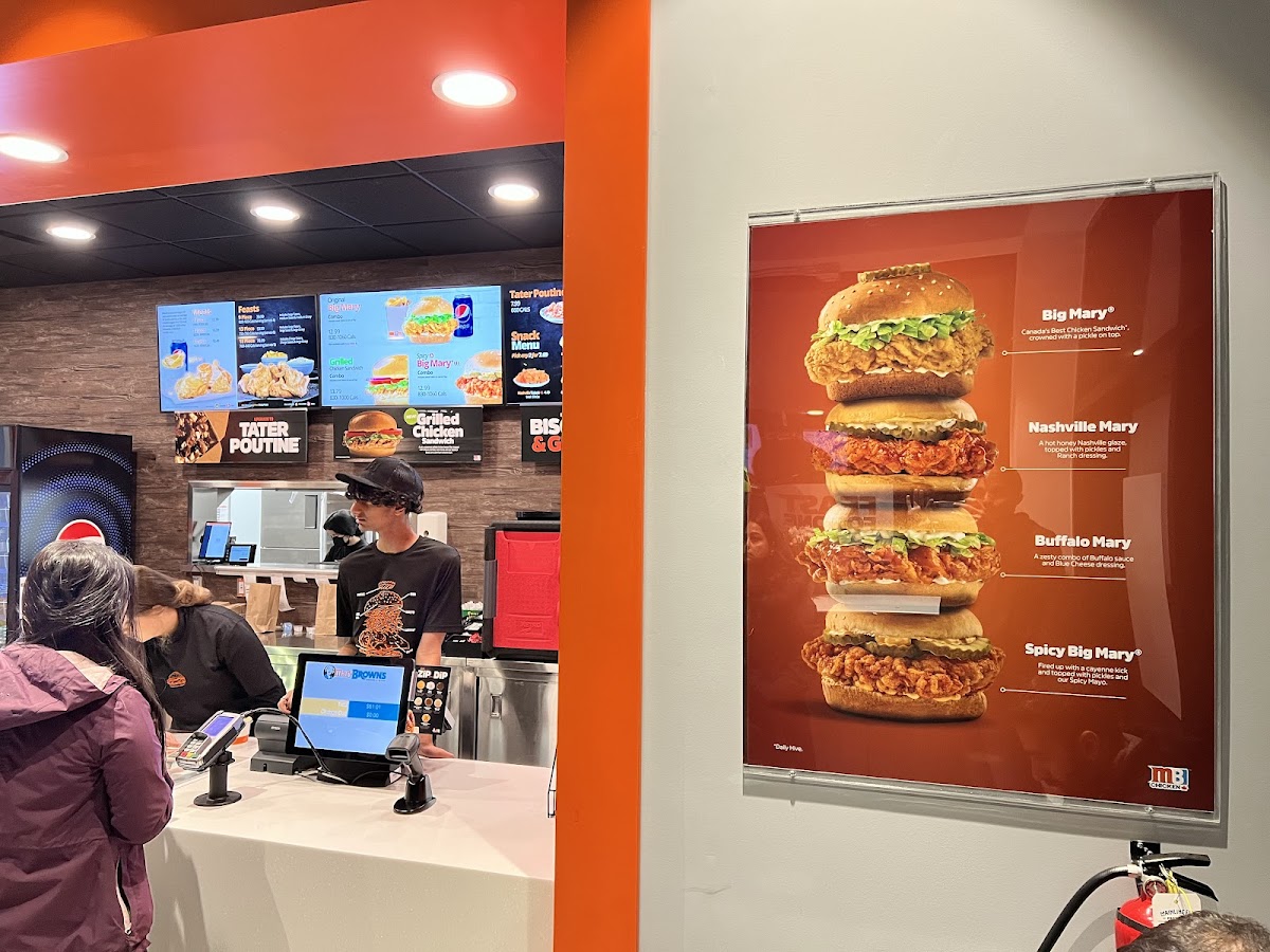Love this location. The chicken is always super crispy, and the tenders always have tight breading. Something you may not have know, but they cut and fry their potatoes fresh in house, which is extremely rare for a fast food chain. A lot of great deals if you order on the app, you can also earn points too. The Honey Dill sauce is my favourite. MB discontinued the sidekick sauce but they have a new spicy mayo and it’s pretty good. In the photo I got the blue jays batter box with is only 22, and comes with 6 pieces of chicken, medium taters, gravy, and 2 biscuits. Definitely a step above their competitors, and very consistent, you know you’re going to get your order right every time you go, and they never miss items. The staff are always really friendly too. I have nothing but good things to say about this business, they do me good every time. A fun fact, they’re also a Canadian owned business, which was founded in Newfoundland all the way in 1969!